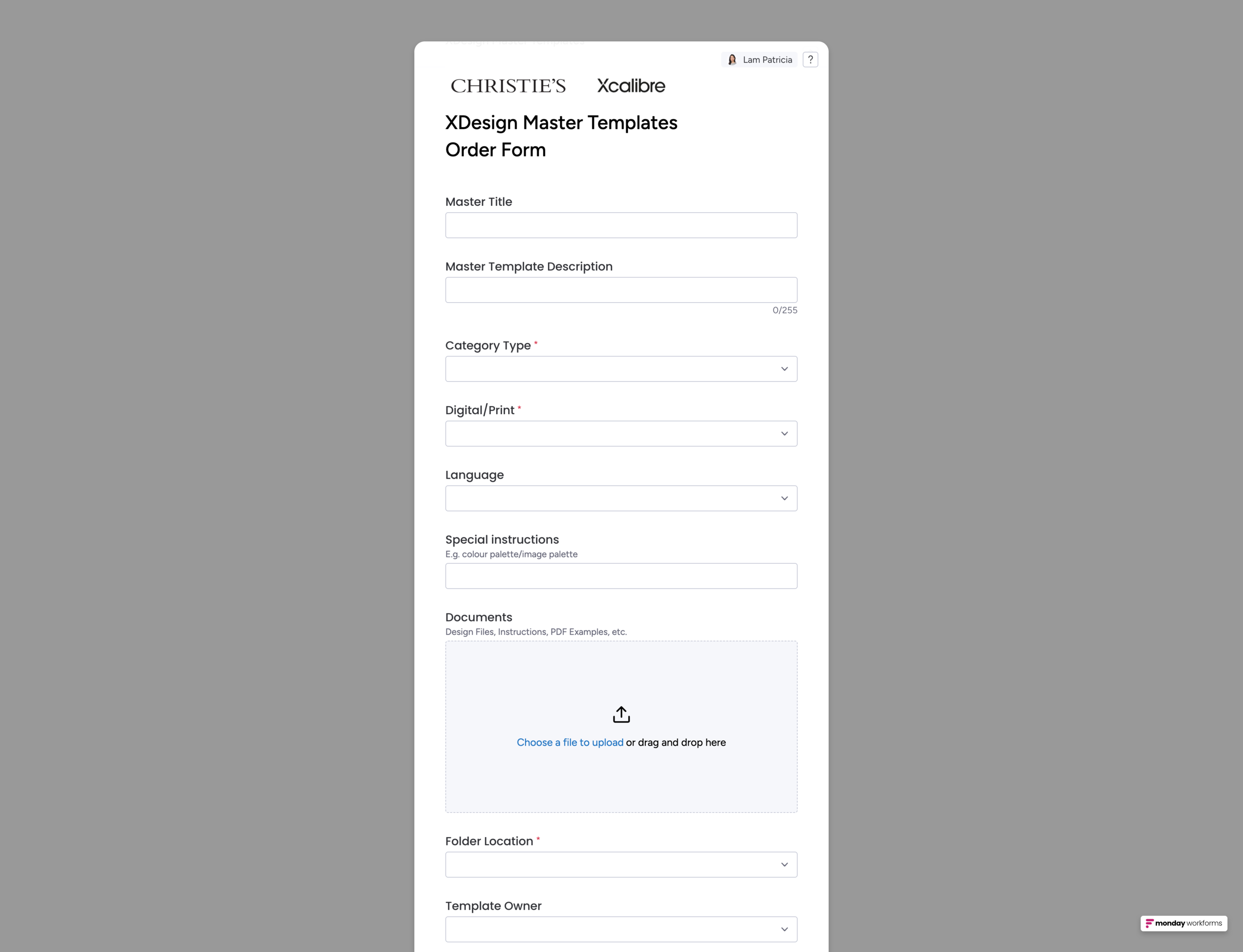 Monday.com master template order form for vendor